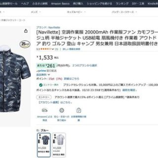 Amazon 空調作業服 20000mAhバッテリー&ファン付 カモフラージュ柄半袖ジャケット 1,533円